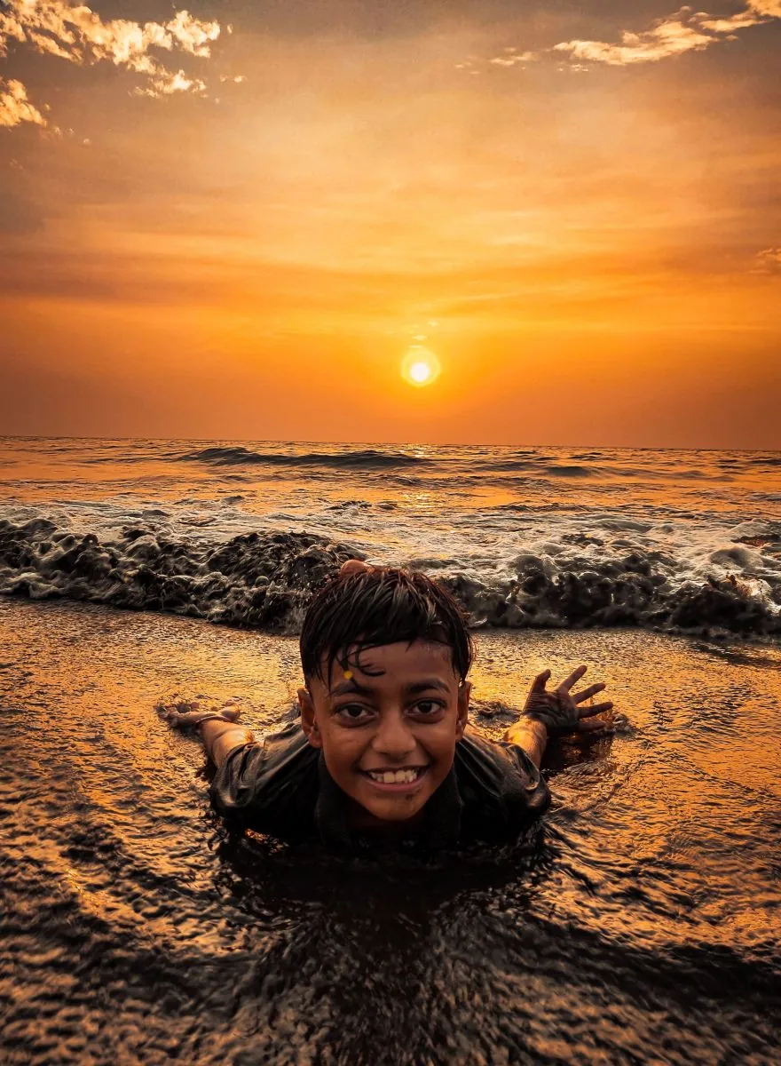 I spotted this kid having a good time at the beach. Because he was having so much fun, I didn't want to interrupt him and capture his genuine expressions. With the lower perspective, I had to get closer to the water, and after a few attempts, I was able to capture this image.